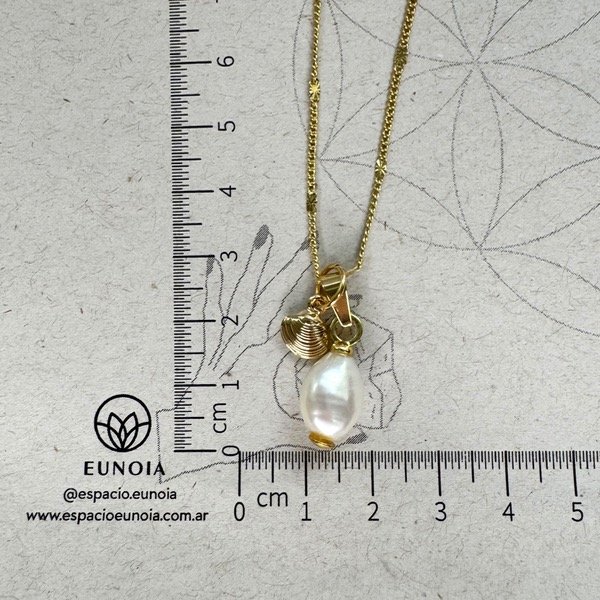 Conjunto Perla Cultivada, dije marino y cadena, baño de oro 18k