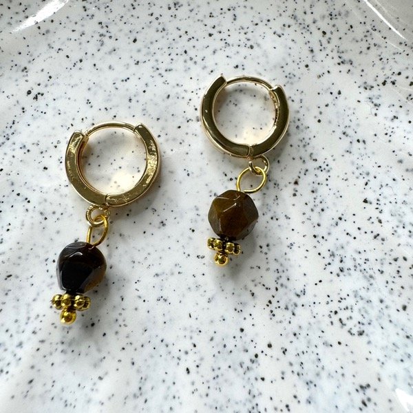 Argolla y Ojo de Tigre, baño de oro 18k
